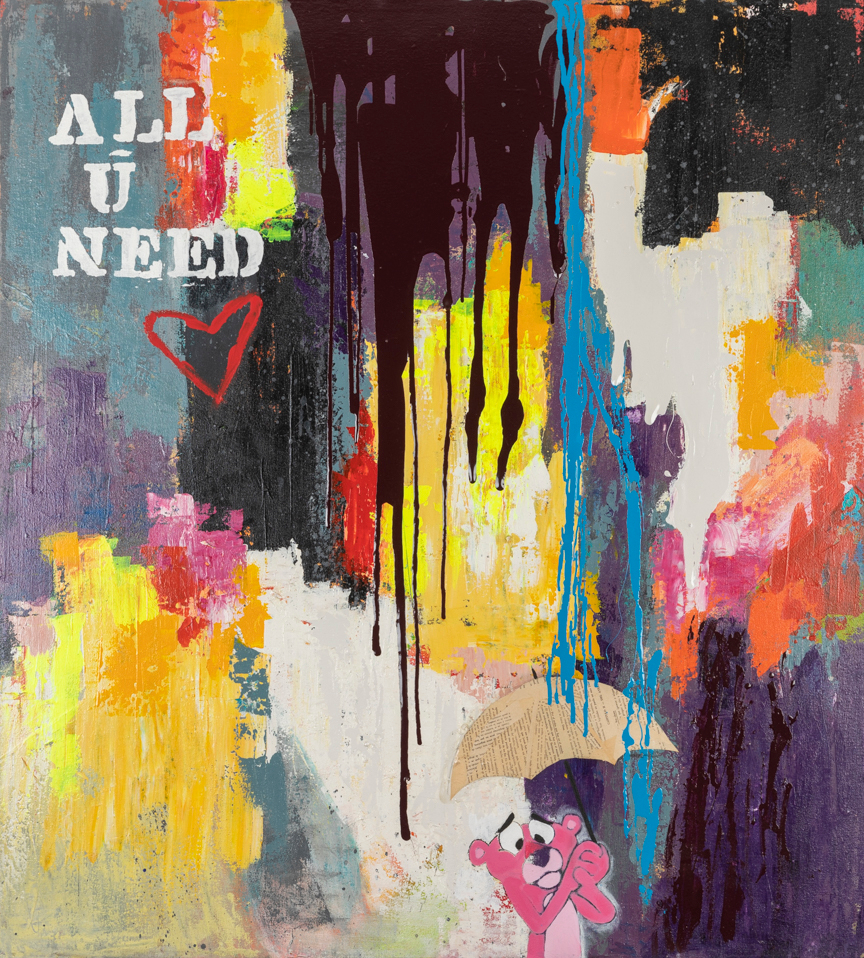 Pink in the rain 1.29 x 1.19 Acrílico y esmalte / Lienzo enmarcado 2021 $32,000